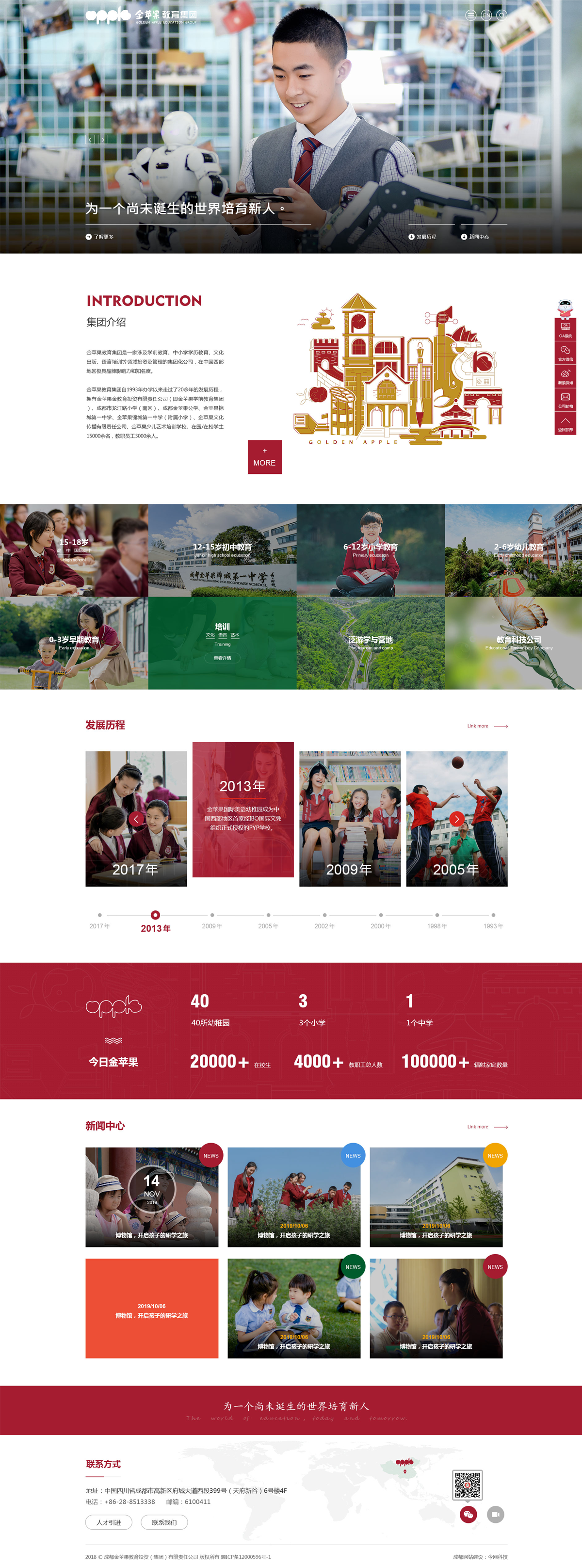 金苹果教育集团是一家涉及学前教育、中小学学历教育、文化出版、语言培训等领域投资及管理的集团化公司,在中国西部地区极具品牌影响力和知名度。