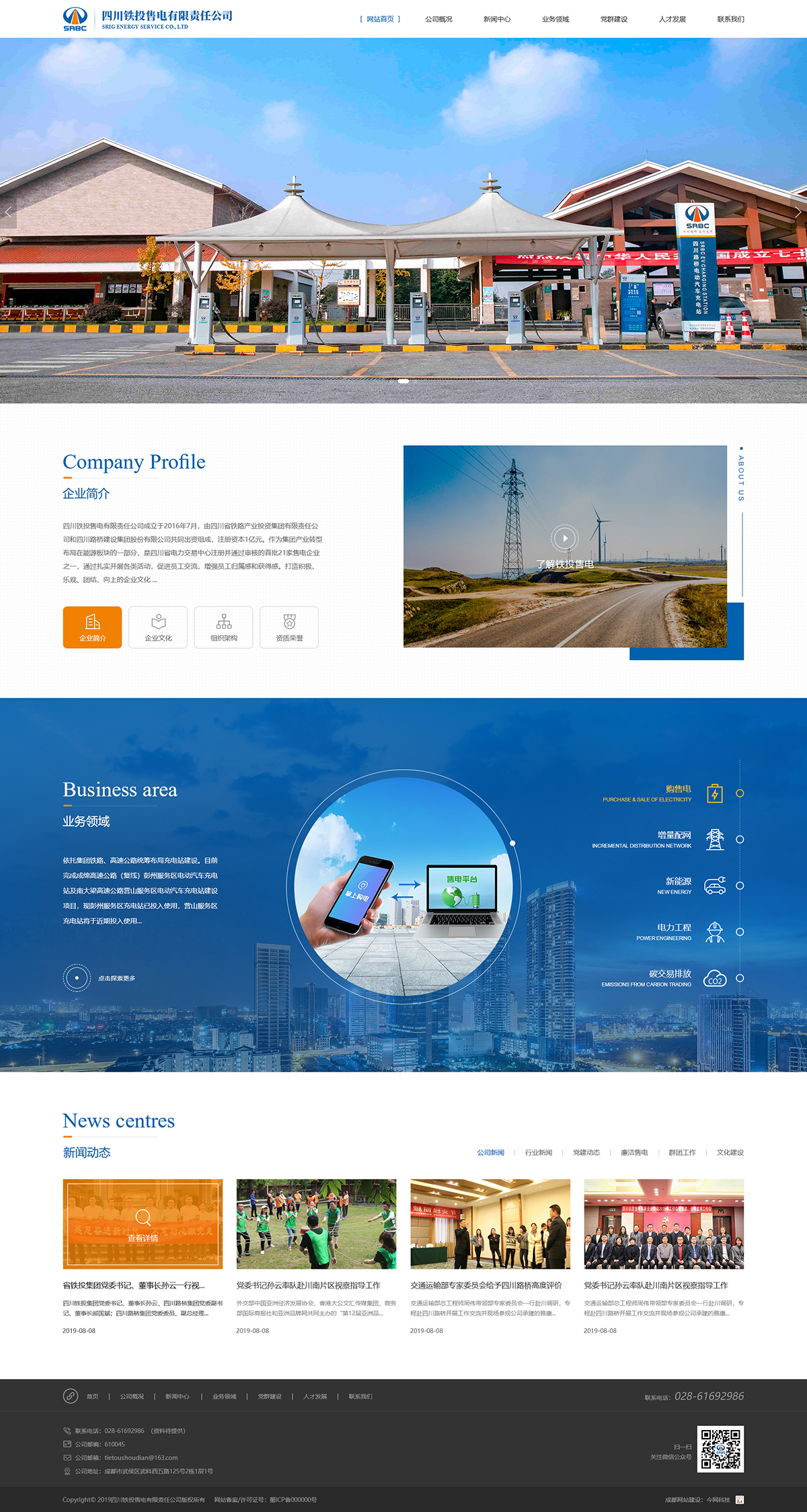 四川铁投售电有限责任公司成立于2016年7月,由四川省铁路产业投资集团有限责任公司和四川路桥建设集团股份有限公司共同出资组成,注册资本金1亿元。作为集团在能源板块产业转型布局的一部分, 我公司始终坚持深入贯彻落实国家和四川省在电力体制改革、清洁能源、纯电动汽车、充电设施基础建设等方面的相关指示精神,致力于打造西南地区一流购售电服务商、配电网建设运营商及新能源服务商。