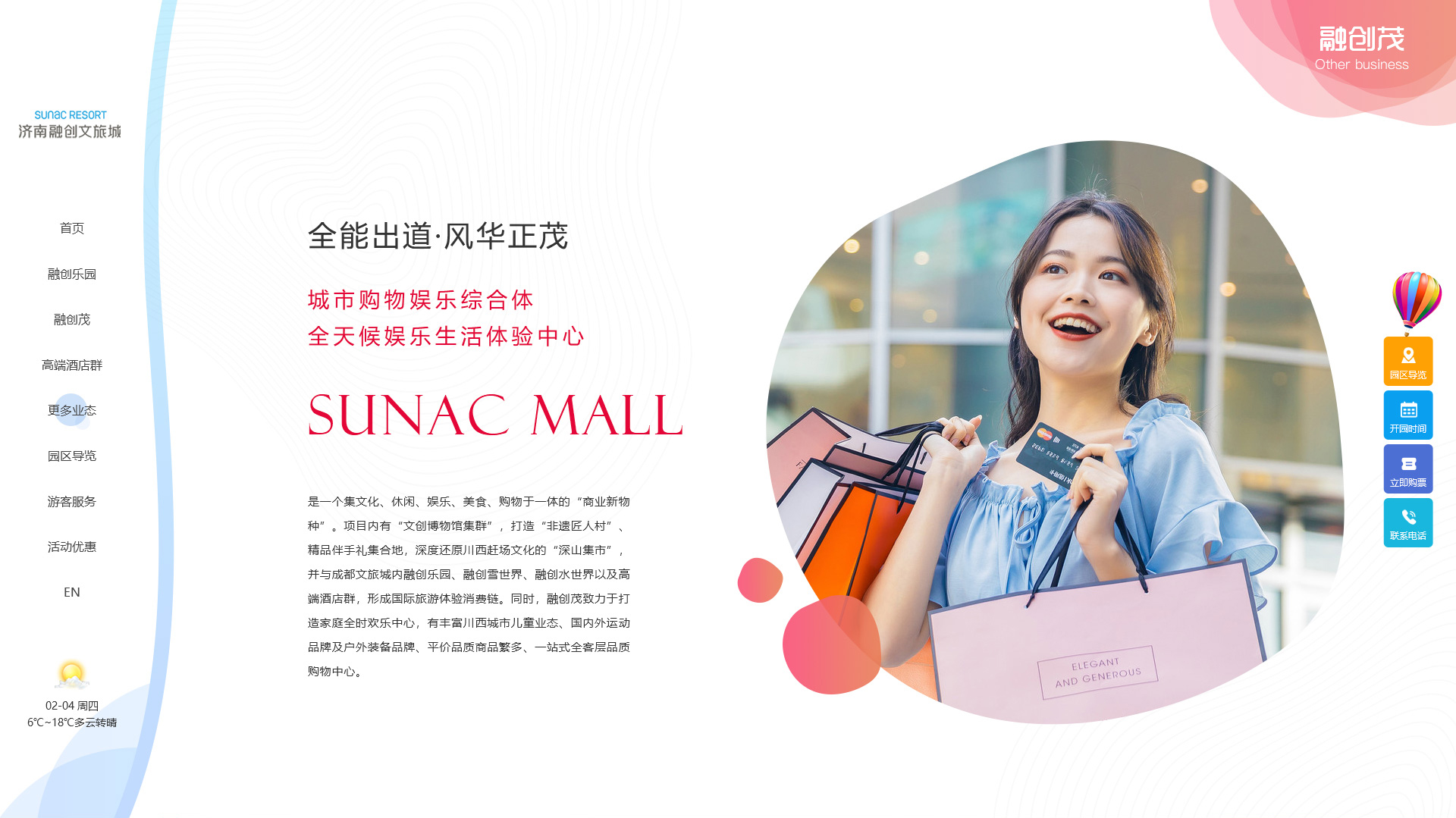 济南融创文旅城汇聚融创茂、融创乐园、水世界、海世界、体育世界、济南融创国际体育中心、会议中心、酒店群、大剧院十大欢乐业态,涵盖商业、娱乐、运动多种业态。以十大业态百种欢乐实力诠释城市欢乐内核,引领商业升级新趋势。文旅城将于2021年5月29日盛大开城,届时将成为山东乃至华东规模最大、业态最全的休闲生活目的地。