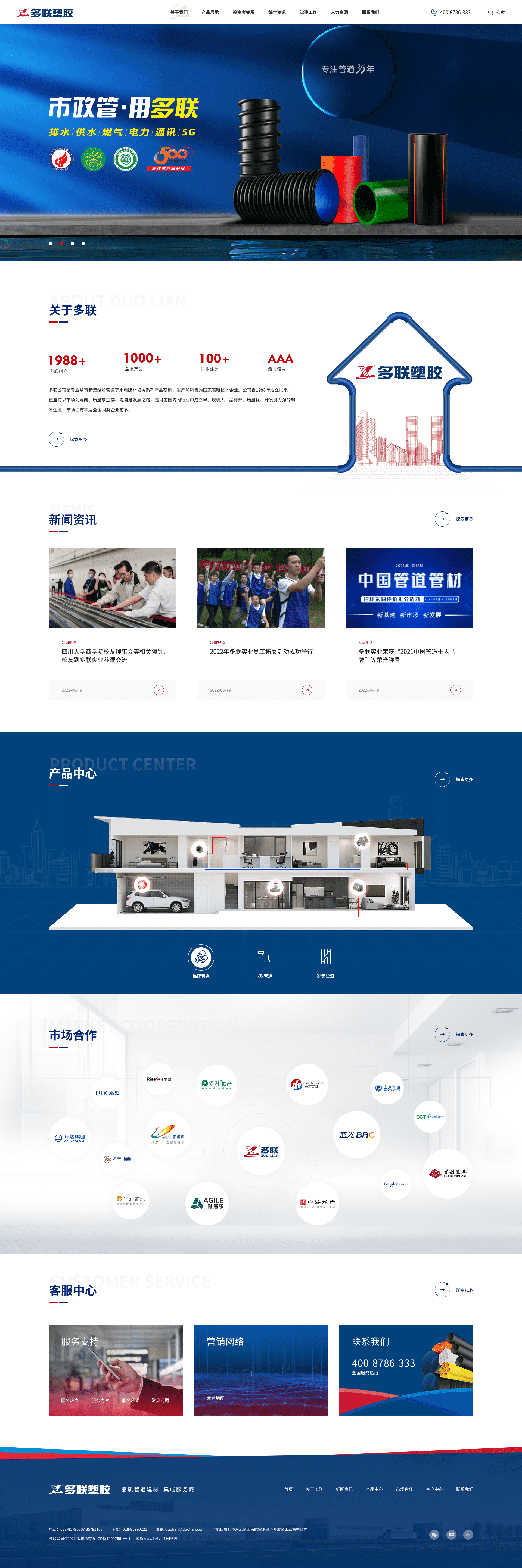 四川多联实业有限公司是专业从事新型塑胶管道等水电建材领域系列产品研制、生产和销售的国家高新技术企业。公司自成立以来,一直坚持以市场为导向、质量求生存、走自身发展之路,是目前国内同行业中成立早、规模大、品种齐、质量优、开发能力强的知名企业,市场占有率居全国同类企业前茅。