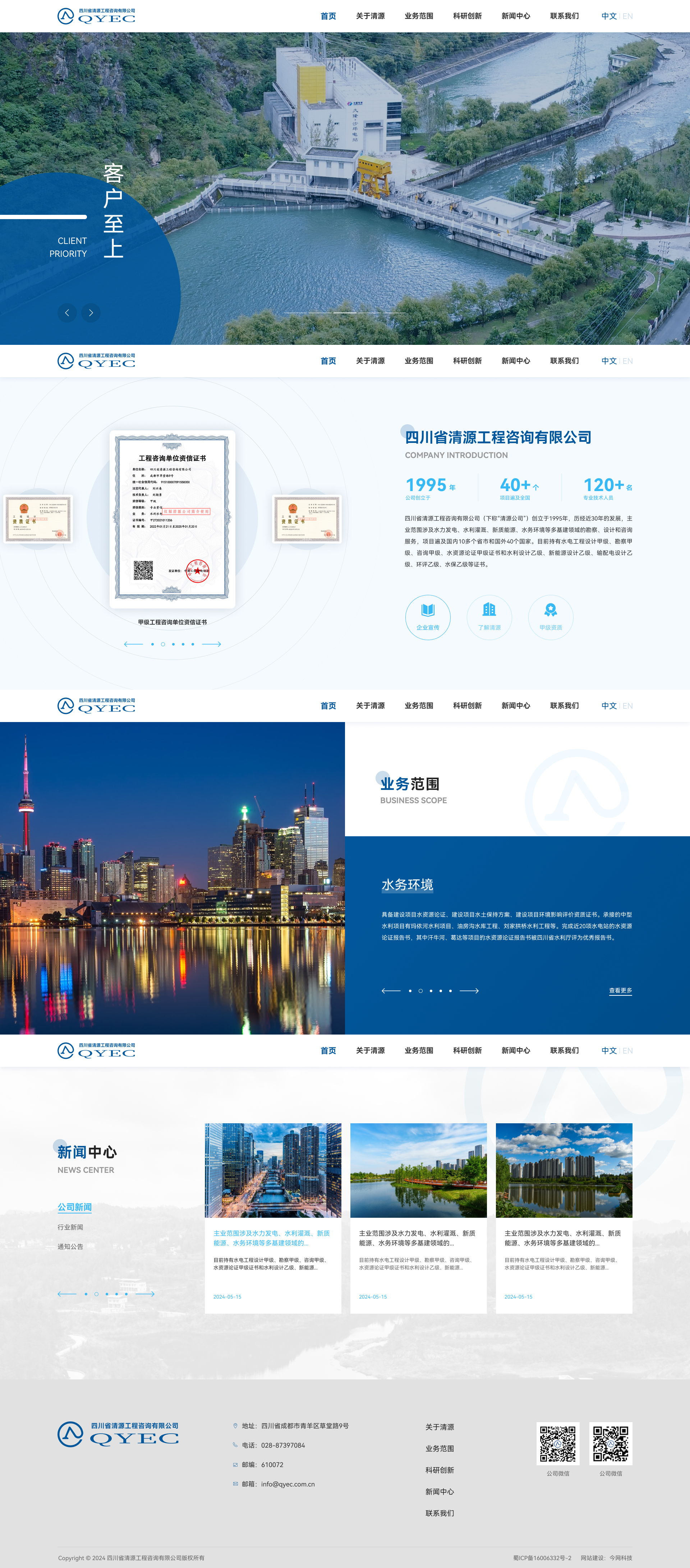 四川省清源工程咨询有限公司(下称“清源公司”)创立于1995年,历经近30年的发展,主业范围涉及水力发电、水利灌溉、新质能源、水务环境等多基建领域的勘察、设计和咨询服务,项目遍及国内10多个省市和国外40个国家。目前持有水电工程设计甲级、勘察甲级、咨询甲级、水资源论证甲级证书和水利设计乙级、新能源设计乙级、输配电设计乙级、环评乙级、水保乙级等证书。
